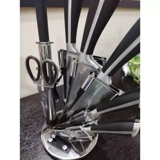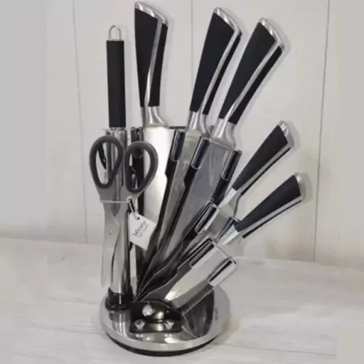سرویس چاقو ساطور آشپزخانه 9 پارچه آیریس مینیاتور کیفیت عالی دسته از بدنه با استند